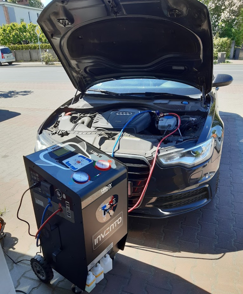 Napełnianie czynnikiem chłodniczym – W samochodach stosowane są 2 rodzaje czynników chłodniczych- R134a („stary”) oraz „nowy” R1234yf. Wg rozporządzenia UE w samochodach wyprodukowanych od 2017 roku musi być stosowany nowy czynnik chłodniczy R1234yf. Zamiana tych czynników lub ich zmieszanie jest skrajnie niebezpieczne. Obsługujemy oba te czynniki, a urządzenie jest wyposażone w detektor który nie pozwala na zanieczyszczenie stosowanego czynnika. Z tego powodu jesteśmy w stanie obsłużyć każdy typ klimatyzacji.