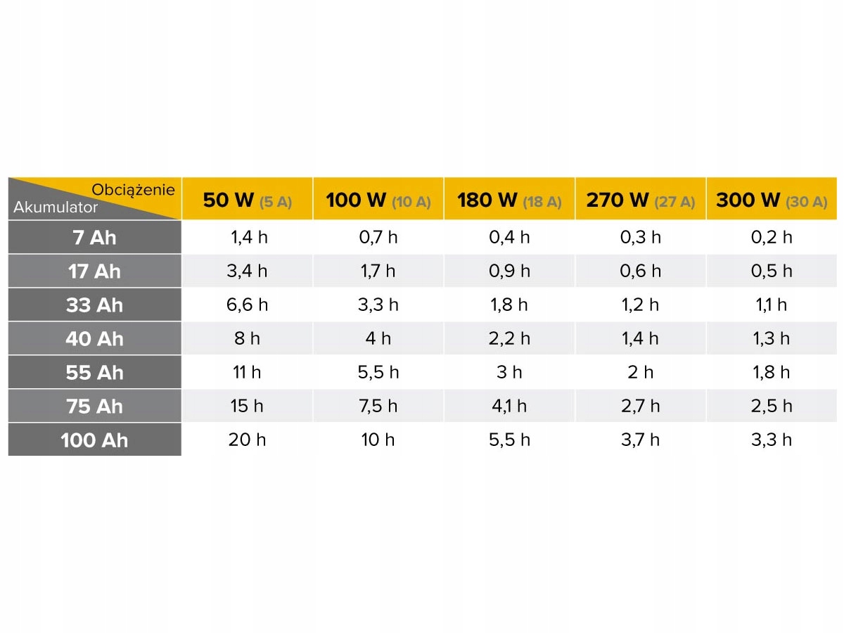 • Typ akumulatorów: Kwasowo ołowiowe np. GEL lub AGM napięcie 12V