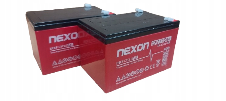Oferujemy zestaw 2 akumulatorów o łącznej pojemności 15 Ah i napięciu 24V. Zestaw składa się z 2 akumulatorów marki Nexon Deep cycle 12V 15Ah . Akumulatory przeznaczone do pracy cyklicznej o prognozowanej ilości 700 cykli. Po połączeniu powstaje zestaw 24V 15Ah. ( zestaw nie zawiera przewodów do połączenia, należy wykorzystać stare). Zestaw jest wzmocnioną alternatywa dla baterii 12Ah.